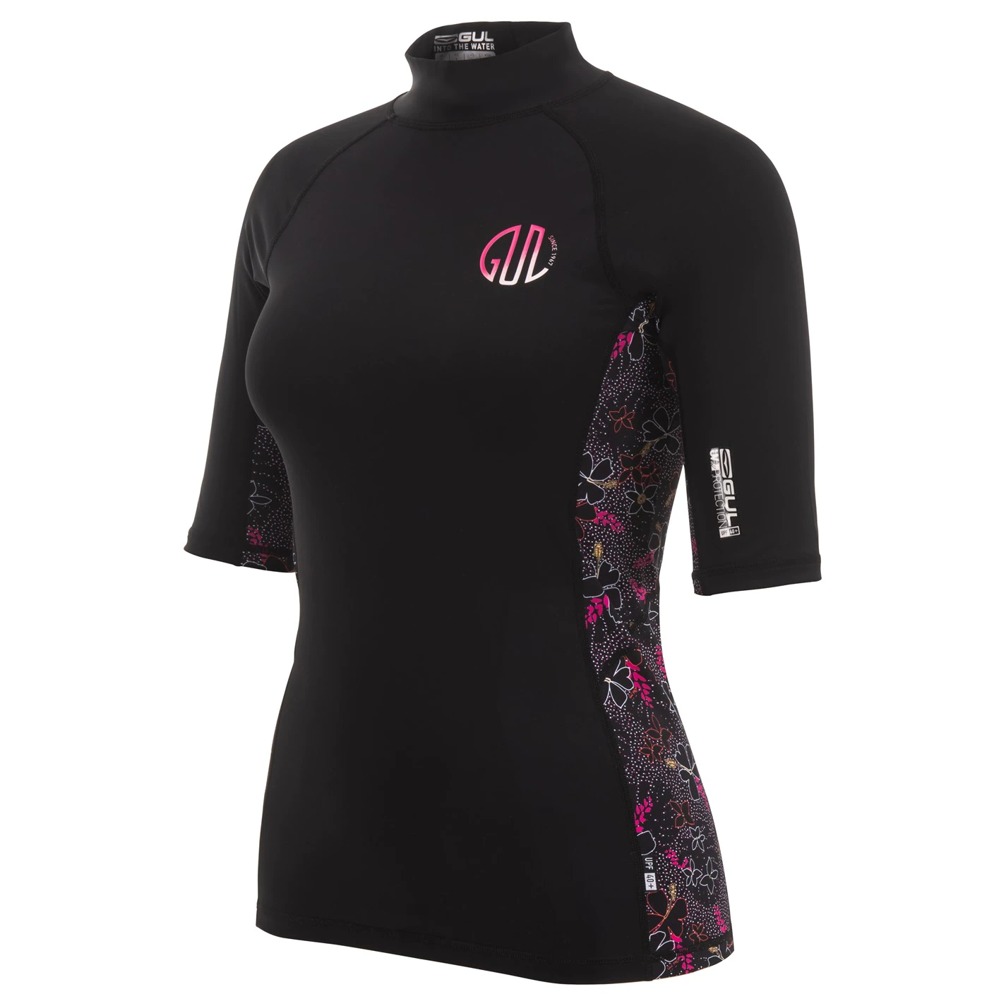 This Gul Short Sleeve Rash Vest is crafted with short sleeves and a high neck for a classic look. It features flat lock seams to prevent chafing and is a lightweight, water resistant construction. This vest is designed with printed panels as well as a signature logo and is complete with Gul branding.