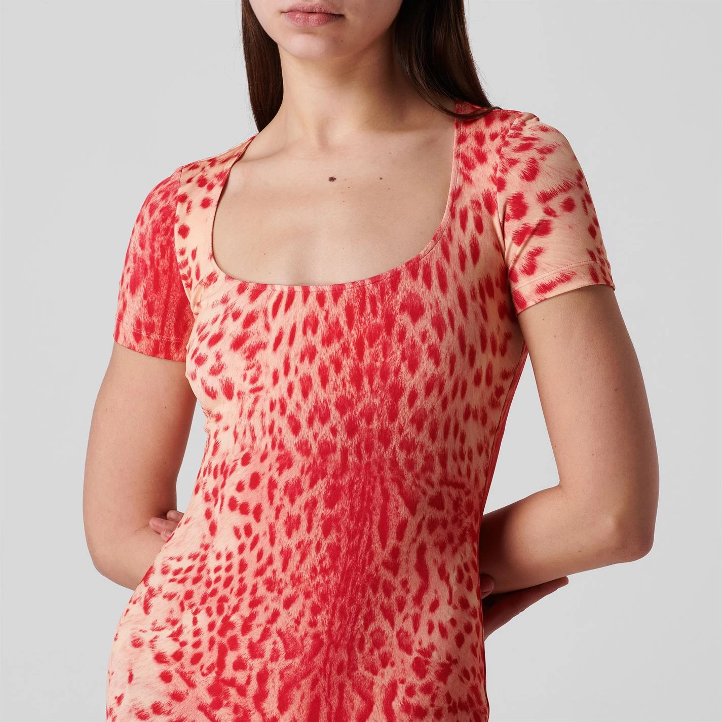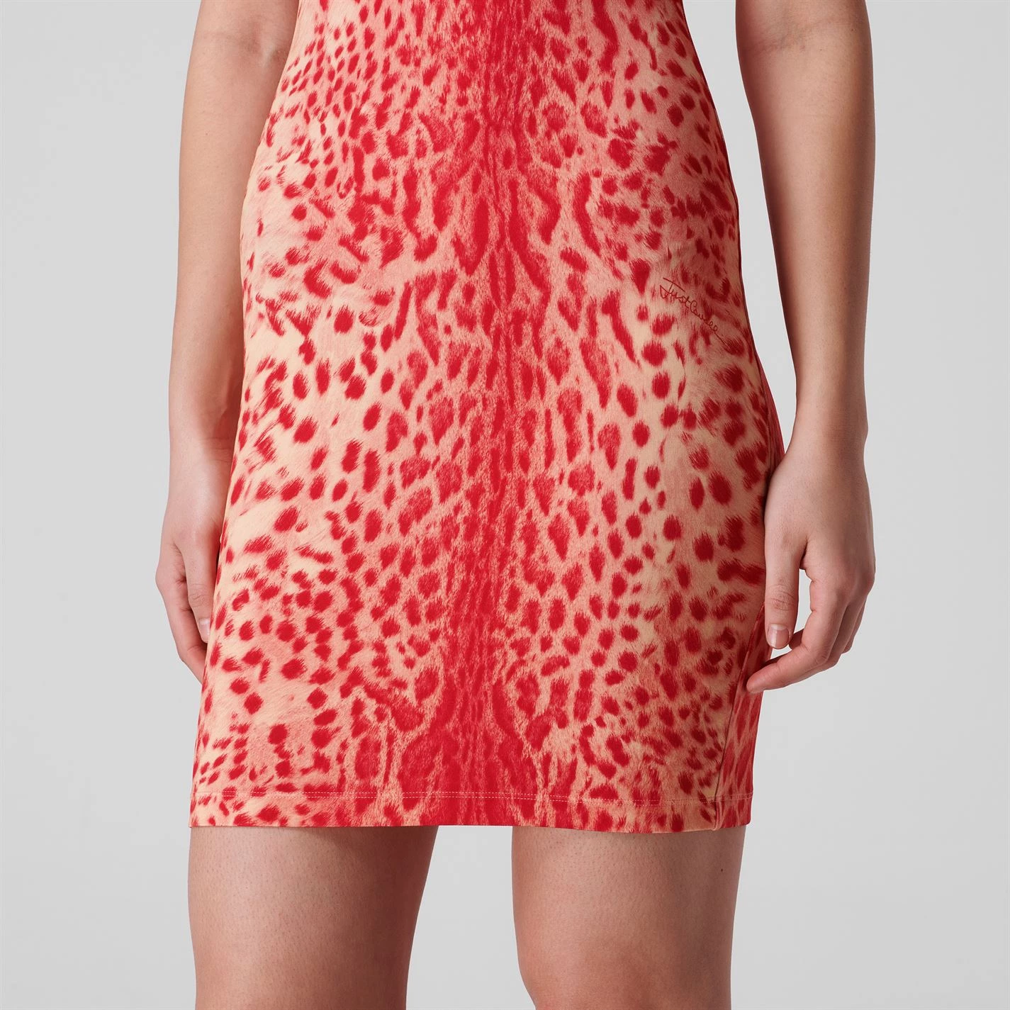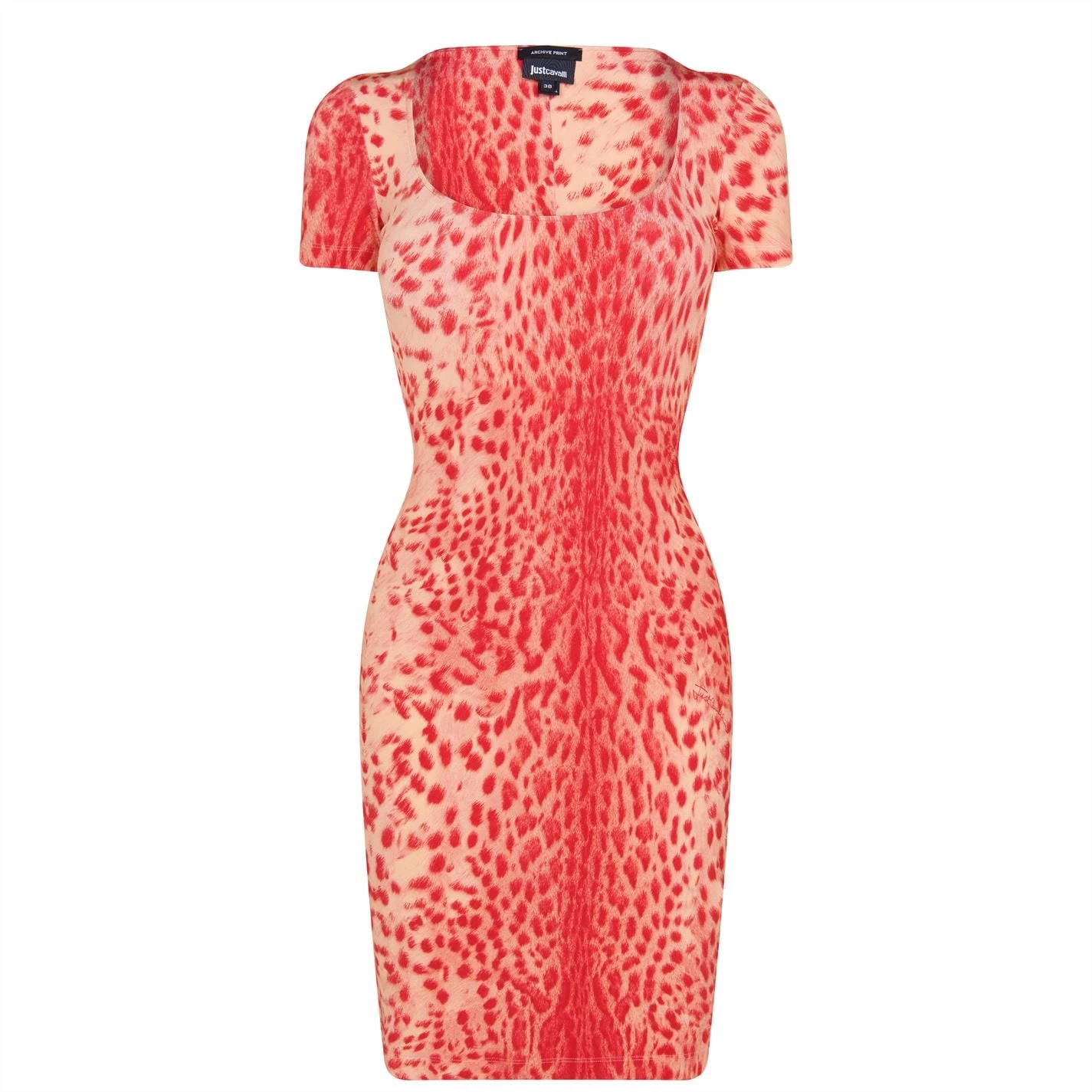 Add a stylish but simple piece to your collection with the just Cavalli Leopard Print Dress. Crafted from a stretchy and figure-hugging Viscose fabrication, this midi length silhouette styles a cherry hue leopard print with a scoop neckline, short cap sleeves and a small split to the side for a feminine touch. Perfect to style with sleek heels and a cropped leather jacket, this piece is perfect to style day to night. Made from 95% Viscose, 5% Elastane.
