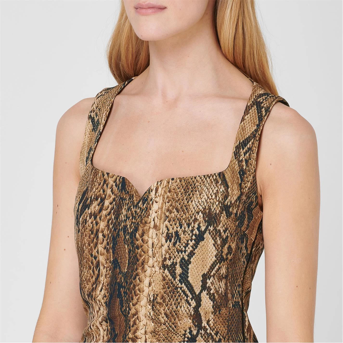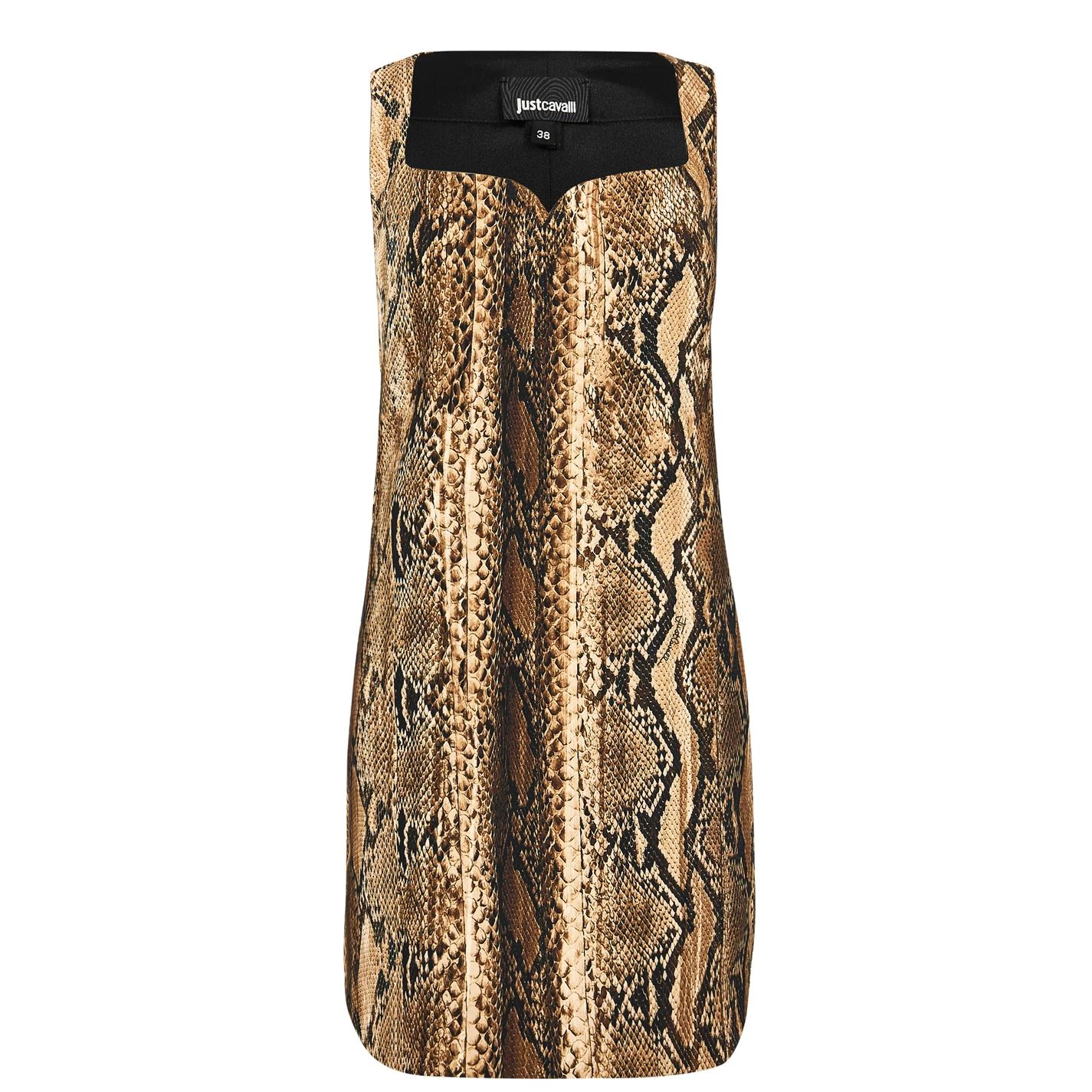 In a signature just Cavalli style, the Snake Dress is the perfect cocktail dress to wear this season. With a striking snake print this slim cut mini dress is crafted in figure hugging fit, with side zip seam. With the upper bodice lined detailing and sweetheart neckline. The strappy dress is complete with subtle branding, pair with black heels and clutch.