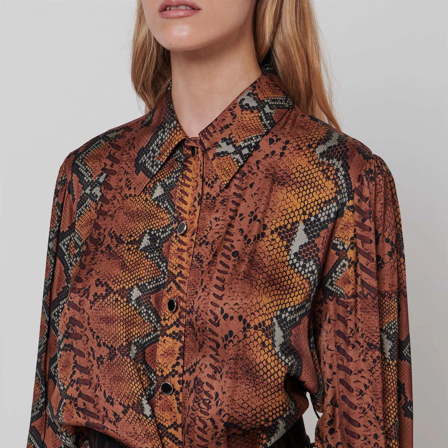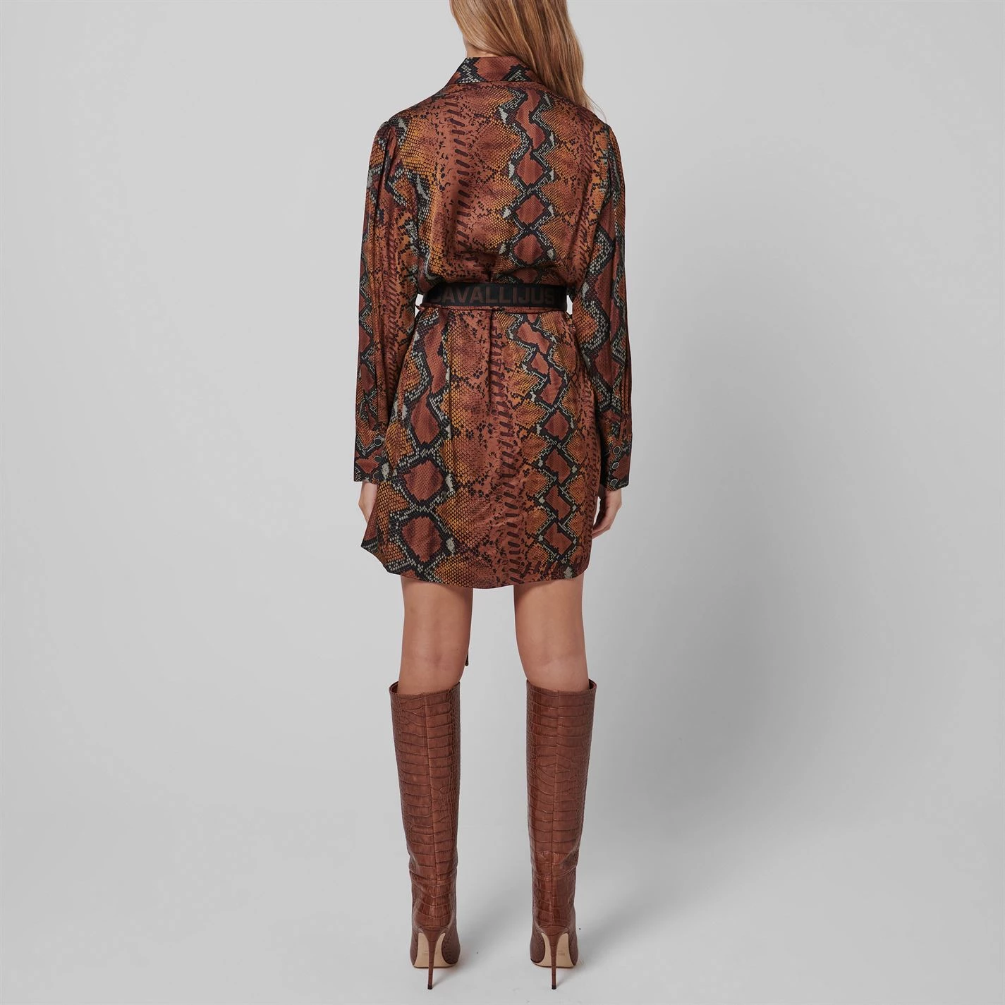 Add a bold print to your collection with the Snake Shirt Dress from Just Cavalli. Made from a smooth satin, this dress is designed with a button fastening alongside button cuffs and a pointed collar. Cut in an above the knee length, this dress is offered in a snake print and is finished with a tie belt featuring the Just Cavalli signature on one side of the belt.
